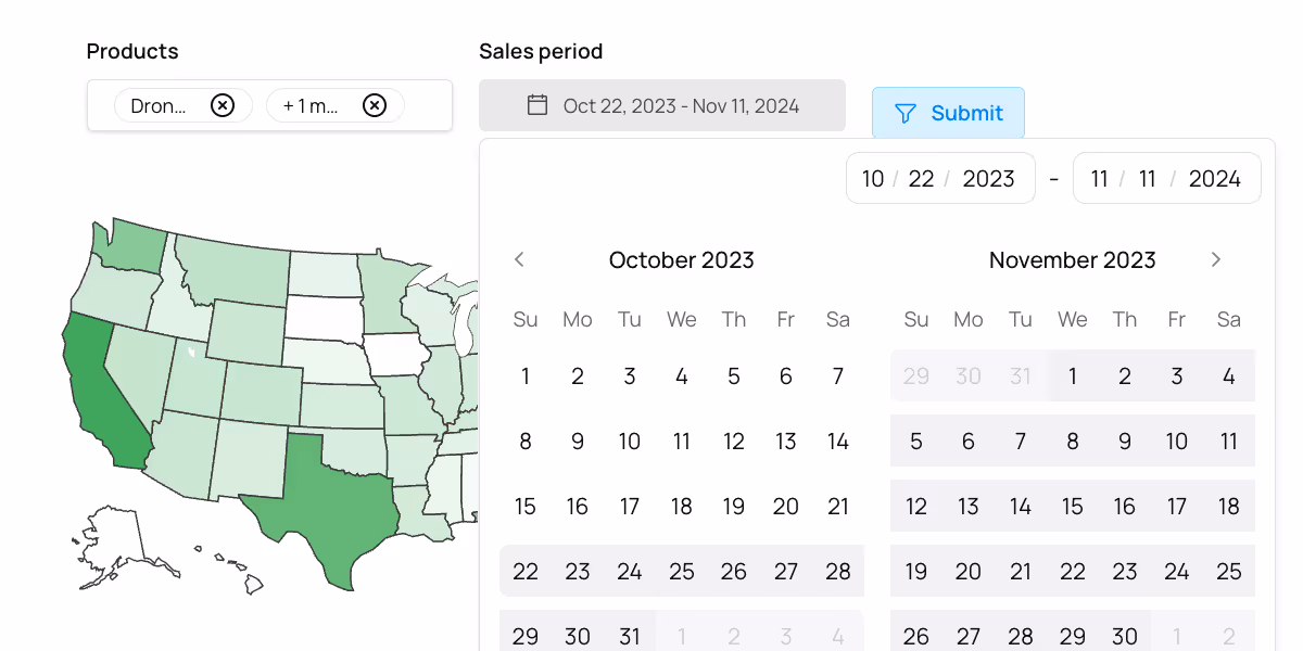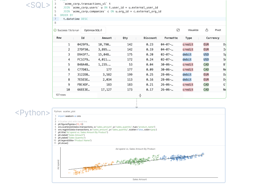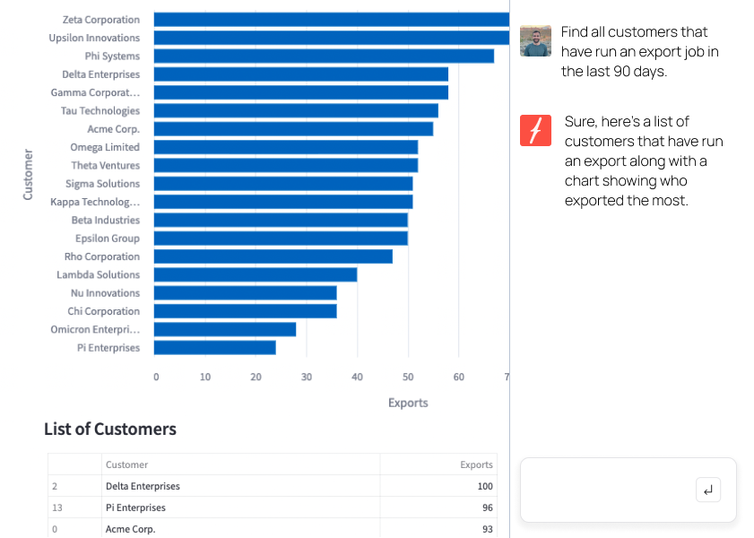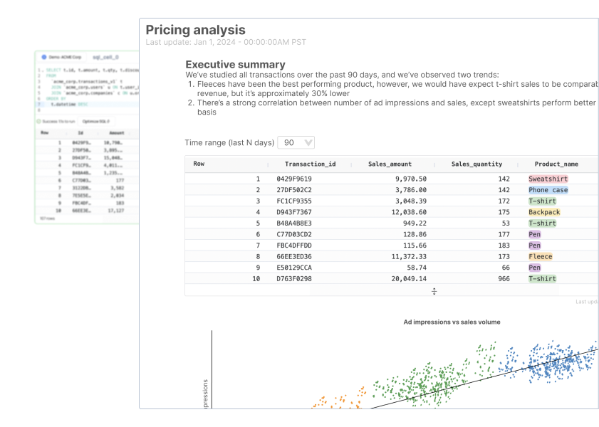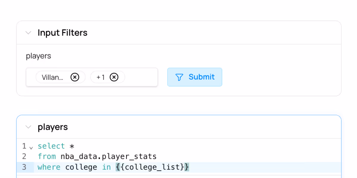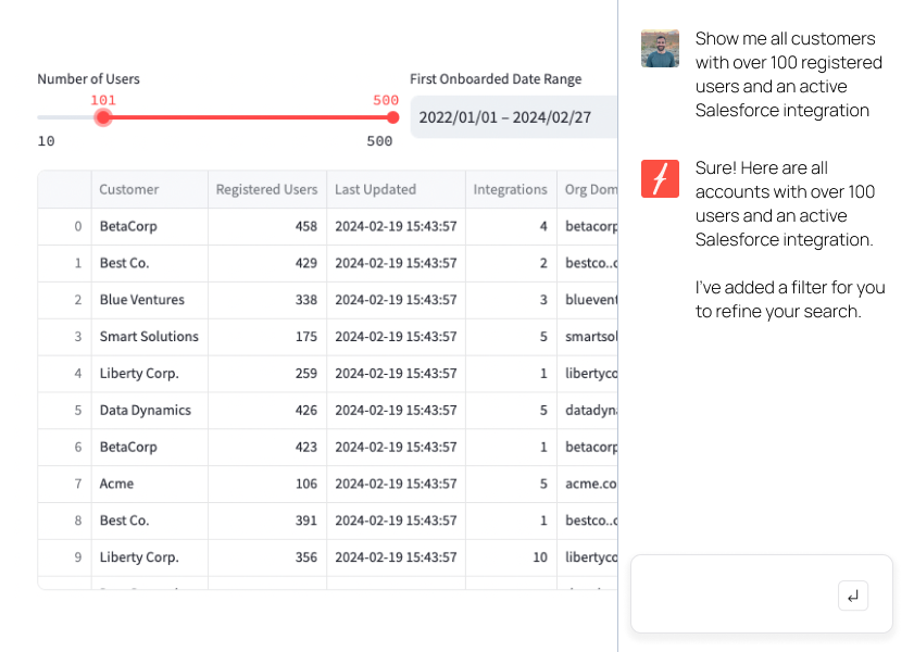 Deliver interactive insights to your team with custom dashboards and data apps, all without extensive coding.