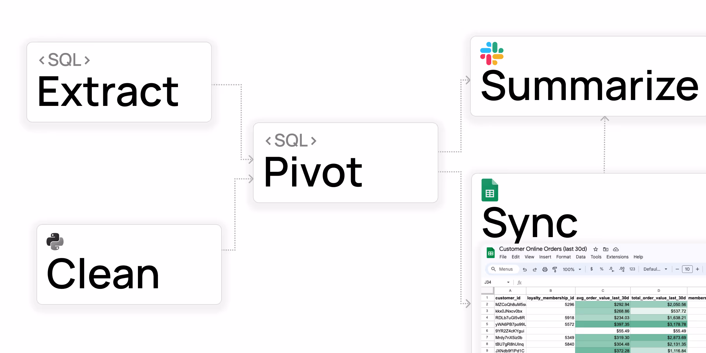 Reclaim your time with intelligent, automated reporting across your stakeholders' preferred tools. Fabi.ai's Smart Reports and Workflows streamline your entire reporting process, from data analysis to delivery.